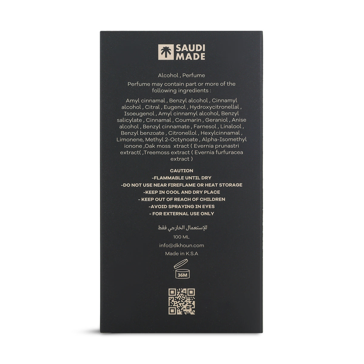 أما القاعدة، فتمنحك ثباتًا وأناقة من خلال مزيج دافئ من الباتشولي، والعنبر، واللبان، مع لمسة عميقة من التونكا، ليترك أثرًا عطريًا جذابًا يدوم طويلاً