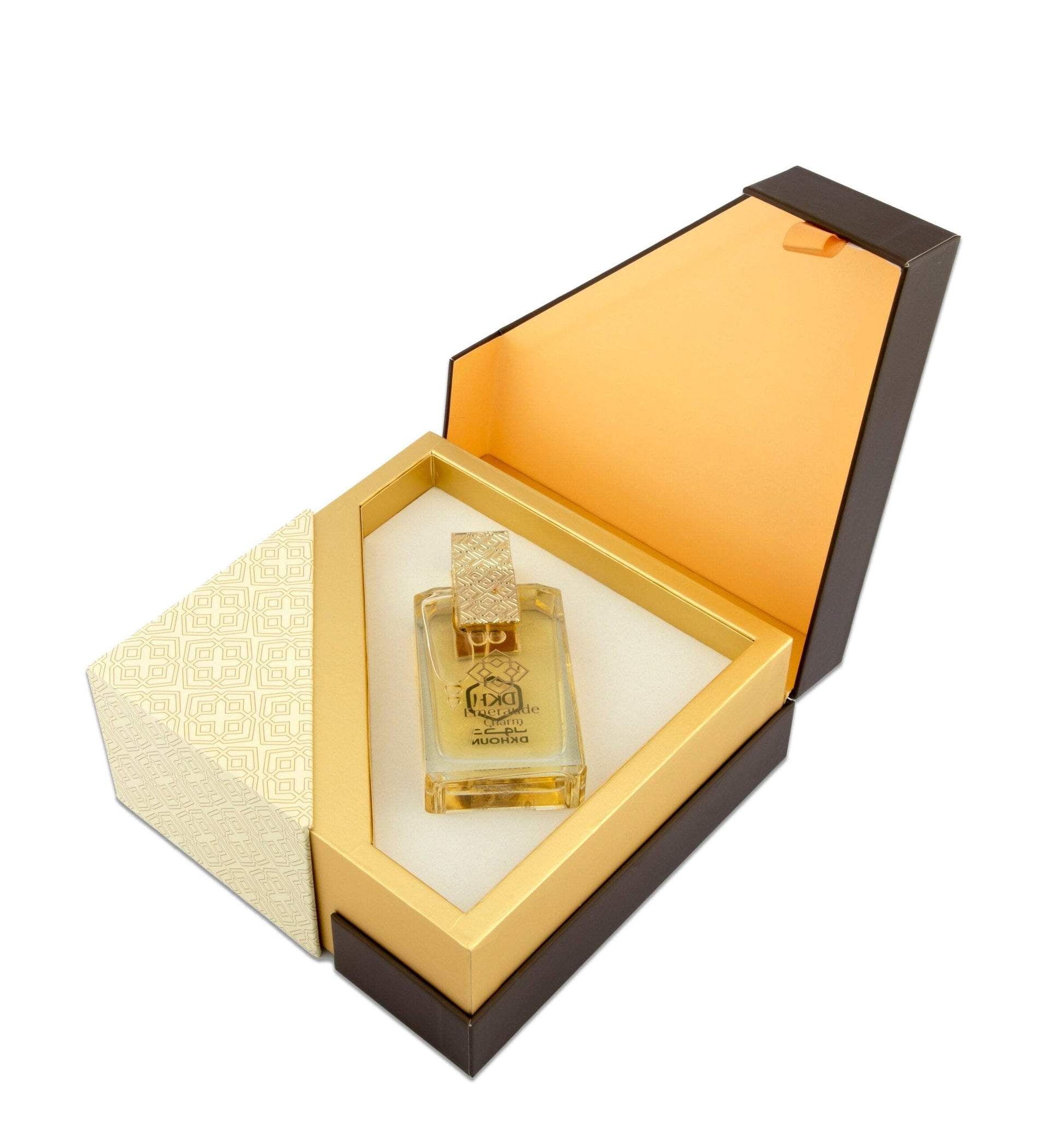 عطر "أميرالد شارم" هو عطر فاخر وجذاب، يجمع بين مكونات عالية الجودة لإنتاج خليط متناغم من الروائح الشرقية والغربية. يتميز هذا العطر بتركيبته الفريدة، حيث يتكون من قاعدة صندل العود الفاخر، وقلب من العطور الفواحة للمسك والباتشولي والشوكولاتة، وقمة من الفراولة والمندرين.